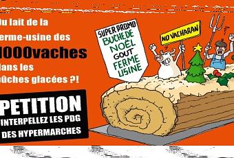 Fermes-usines : l'association Agir pour l'environnement a lancé une pétition pour dire non au lait de "la ferme des 1000 vaches" utilisé dans les bûches de Noël vendues en supermarché.