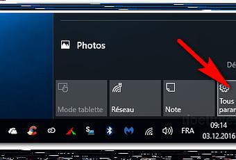 Cliquez en bas à droite de l'écran sur l'icône Notification. Dans la fenêtre qui s'ouvre cliquez sur Tous les paramètres. Dans la fenêtre Paramètres, cliquez sur Système.
