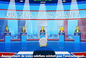 Greenpeace présente « Qui sera le Prochain ? », un film d’animation inédit parodiant la campagne Présidentielle 2017 et mettant en scène le Président actuel et certains candidats déclarés. François Fillon, Jean-Luc Mélenchon, François Hollande, Marine Le Pen et Yannick Jadot caricaturés à la manière de la série « Les Simpson » participent au grand débat télé des candidats de la Présidentielle 2017, « Qui sera le prochain ? ».
