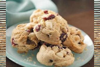 Cookies au chocolat blanc et aux canneberges, des biscuits délicieux pour votre table de goûter.