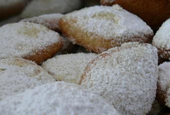 Pétrir tous les ingrédients prévus pour la pâte. L'envelopper dans du film plastique et mettre au frais 30mn. Puis former des rouleaux de 3cm de diamètre . les envelopper dans du film plastique et les laisser reposer 30 mn au frais.Découper des rondelles d'un cm d'épaisseur et façonner des formes ovales avec les mains(genre calisson d'Aix). Les déposer sur du papier sulfurisé ou un silpat et mettre au four chaud (200° en statique ou 180° en ventilé)pendant 10mn.Dès la sortie du four les saupoudrer copieusement du mélange sucre glace/sucre vanillé.