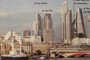 Il y a déjà le Cornichon (le Gherkin). La célèbre tour de Norman Foster est devenue le nouveau « landmark » de Londres. Il y aura bientôt la Râpe à fromage (The Leadenhall) et le Toboggan (Bishopgate). Il y aura aussi la Tour Heron et la Tour Minerva.