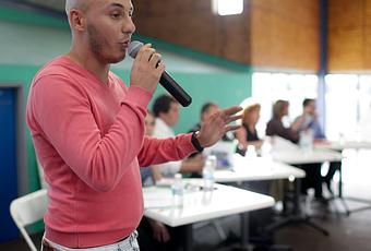 Samedi 2 juin, 18 heures. Il fait encore chaud à La Courneuve (Seine-Saint-Denis). Toute la journée, le soleil a brillé comme en plein été. Une journée à pique-niquer, à s’aérer au parc, ou à rester au frais à regarder les derniers Français batailler à Roland-Garros. En cette fin d’après-midi, des jeunes gens se sont pourtant démenés pour proposer un autre programme à leurs concitoyens : ils sont parvenus à réunir dans un gymnase de la ville sept des dix candidats aux législatives sur la 4e circonscription de Seine-Saint-Denis, à laquelle La Courneuve a été rattachée cette année dans le cadre du redécoupage électoral.