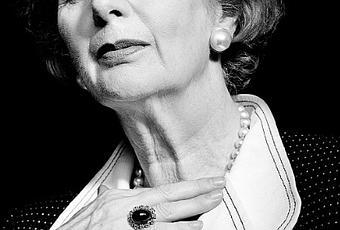 Belle photo en N & B de Margaret Thatcher vue par Nigel Parry à la Une du Monde.