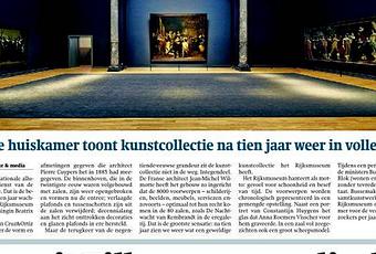 Hier à la Une de Volkskrant qui montre le mur vide où a été installée, la plus célèbre oeuvre du musée, La ronde de nuit de Rembrandt.