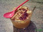 Quand la pâte à crumble est bien dorée, laisser un peu refroidir et disposer sur les verrines (j'aime bien mettre la pâte encore chaude sur les fruits ça caramélise un peu miam!)Vous pouvez aussi ajouter du coulis de fruit ou de la crème... Régalez-vous bien!
