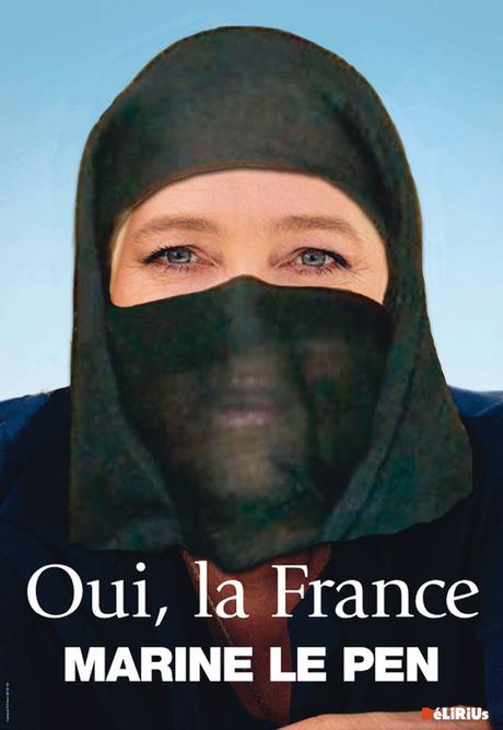 Cette image de Marine Le Pen voilée, qui a beaucoup circulé sur Internet, a été publiée en 2012 par le journal satirique en ligne Délirius, spécialisé dans le détournement humoristique des documents de propagande politique. « Les parodies ont uniquement pour but de faire rire et sourire », avertit le site.