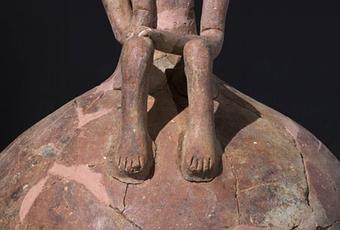 C’EST UNE JOLIE petite découverte qui vient d’être dévoilée, mercredi 23 novembre, par l’Autorité des antiquités d’Israël, l’organisme public responsable des sites et des fouilles archéologiques dans le pays. Un personnage assis, le menton dans la main droite, la main gauche posée sur un genou, dans une posture qui évoque irrésistiblement le Penseur d’Auguste Rodin. Haut de seulement 18 centimètres, le mystérieux bonhomme, doté d’immenses yeux ronds, fait partie intégrante d’une carafe en terre cuite dégagée en octobre lors du tout dernier jour des fouilles réalisées dans la ville de Yehud, non loin de Tel-Aviv, préalablement à la construction d’un immeuble.