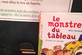Aujourd'hui sur le blog je suis très heureuse de vous parlez d'un livre que la classe de Lola a "étudié" en début d'année "Le monstre du tableau" Lola à eu la chance de récupérer le cartable à album, chaque week-end il change de propriétaire, elle était très fière, de le connaître par cœur et de nous raconter l'histoire (d'ailleurs la maîtresse a dit que tout le monde devait livre le livre donc Papa et Luna devait impérativement être avec nous pendant la lecture du soir)