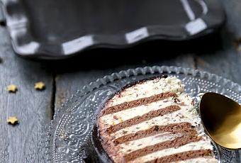 Cette bûche est réalisée sur le principe des gâteaux sans cuisson ou "icebox cake" , il s'agit de réaliser une crème à base de chantilly et de mascarpone parfumée à l'orange et aux copeaux de chocolat noir , d'imbiber des biscuits type spéculoos , ou belvitta ou petits beurre au chocolat (mais pas recouverts de chocolat ) et de les placer simplement dans le moule . Une fois congelée , vous pouvez facilement la glacer et soit la manger presque glacée , soit attendre un peu et obtenir une texture plus crémeuse .