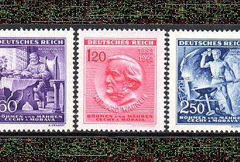 Des timbres seront imprimés dans le protectorat du 15 juillet 1935 (anciens timbres tchécoslovaques surimprimés) au 1er février 1945. La série commémorant le 130e anniversaire du compositeur date du 22 mai 1943. Elle a été gravée par A. Erhardt (1et et 3e timbre) et Langenberger (2e timbre). Le timbre de 60 haléřů commémore la représentation des Meistersinger à Prague en 1871, celui de 205 haléřů celle de Siegfried dans la même ville en 1887.