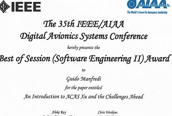 Les deux articles ont été acceptés et leurs présentations ont fait l'objet d'un grand intérêt. En témoigne la reconnaissance de la DASC puisque, pour la 1ère participation de l'équipe à cette ancienne et prestigieuse conférence, les membres de la Chaire ont eu le plaisir de recevoir un prix "Best of session" pour l'article intitulé "An introduction to ACAS Xu and the Challenges Ahead".