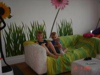 Le cadeau bonux: Capouchou et son cousin Clément chez mon frère....C'est joli hein les fleurs?