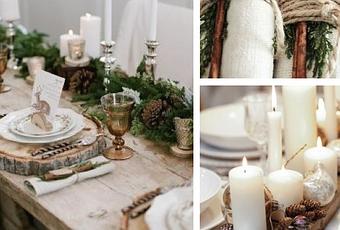 Pour une table de fêtes nature, pas besoin de se ruiner, l'essentiel de la déco peut se trouver en forêt : branches de sapin, morceaux de bois, pommes de pin ou écorce... Avec une nappe blanche et quelques touches de rouge pour rappeler Noël et vous aurez une table de saison !