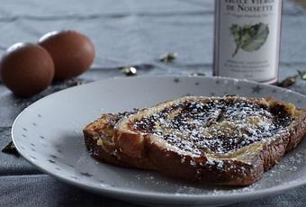 Dans un saladier, versez tous les ingrédients de la liste sauf l’huile de noisette. Fouettez bien le tout. Puis trempez-y vos brioches. Il ne faut pas qu’elles soient trop imbibées non plus sinon elles ne se tiendront plus.