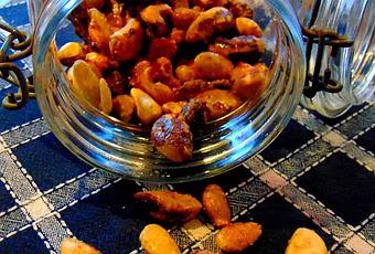 Encore une fois j'édite un vieux billet.La recette originale comprenait un blanc d'oeuf.Comme les oeufs ne font plus partie de notre alimentation, au fil des dernières années j'ai expérimenté la fabrication de ces noix épicées tout simplement "sans", avec un substitut du commerce et..... ô joie; avec de l'aqua faba.Nul besoin de déranger une poule et ses poussins... la "vulgaire" eau de la boîte de conserve des pois chiches, que l'on jette allègrement fait au moins tout aussi bien l'affaire.Évidemment, l'eau de cuisson des pois chiches "maison" sera encore mieux pour l'environnement, mais je ne lève pas le nez sur une "cacanne" de temps à autres, surtout si c'est pout TOUT utiliser.