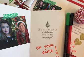 J'essaye ensuite d'utiliser ces photos pour nos cartes de Noël que nous remettons aux adultes qui entourent nos enfants ainsi qu'à la fin de l'année scolaire.