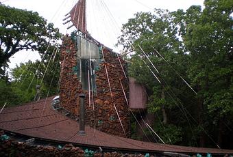 Bavinger House a été achevée en 1955 à Norman, Oklahoma, États-Unis, la maison de l'architecte Bruce Goff est considérée comme un exemple significatif de l'architecture organique, elle a reçu le prix " Twenty-five Year Award " de l'Institut américain des architectes en 1987 et elle a été ajoutée au registre national des monuments historiques en 2001. Bavinger House a été construite en cinq ans par les artistes Nancy et Eugène Bavinger, les résidents de la maison, avec l'aide de bénévoles et des entreprises locales.