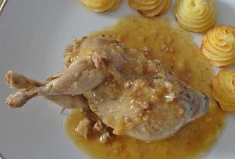 Cailles farcies aux pommes et marrons, sauce au foie gras et à l'armagnac