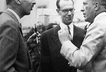 Le CICR, dès 1949 et face aux conflits de décolonisation s’attela aux projets de protocoles additionnels pour mieux renforcer la protection des personnes dans la guerre. Il fallut près de 30 ans pour les faire aboutir. Au centre sur la photo, René-Jean Wilhelm, l’un des rédacteurs en 1949.
