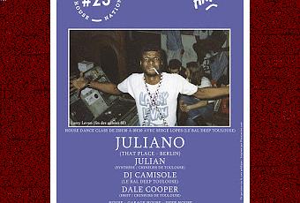 Pour fêter dignement le passage à 2017, nous sommes heureux de vous annoncer que l'invité de notre Toulouse House Nation #23 de ce samedi 7 janvier sera Juliano, excellent DJ, très bon producteur et fondateur du label That Place. Le Lyonnais émigré à Berlin a le goût sûr en ce qui concerne les artistes qu'il signe sur son label où on a par exemple pu voir MZKBX aka Sacha Mambo de Macadam Mambo. En tant que DJ, il a fait ses armes avec sa résidence à l'Ambassade à Lyon, et il est aujourd'hui booké dans les événements qui comptent. Ainsi, on ne s'étonnera pas de l'avoir vu programmé aux Nuits sonores cette année, ou encore au Trésor à Berlin, au Sucre, au Razzmatazz ou au Rex, aux côtés de grands noms comme Lil'Louis ou Dj Harvey. Enfin, en tant que producteur, il sort une House racée qui peut flirter avec la Techno, comme en témoigne son EP Tetufard sorti en octobre 2016. Comme vous l'aurez compris, on s'attend donc à un set de haut vol dans la cale de la péniche, d'autant plus que le jeune homme est un garçon sensible qui a le don de passer avec une dextérité hors norme de la house à la techno, du funk et de la disco à l'acid ou encore à l'italo !