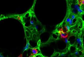Un des premiers signes de la maladie pulmonaire obstructive chronique (MPOC) est e général la toux chronique. Au fur et à mesure que la maladie progresse, l’emphysème pulmonaire se développe avec une expansion irréversible des dommages aux alvéoles (en vert sur visuel ci-contre). Les cellules immunitaires (en rouge) ne sont plus capables de réparer les structures détruites, explique l’auteur principal, le Dr Melanie Königshoff, responsable de l’Unité de recherche sur la réparation et la régénération des poumons au Helmholtz Zentrum München. Son équipe a cherché à comprendre le mécanisme en cause dans cette incapacité de réparation et a identifié le rôle clé d’une protéine, Wnt5a.