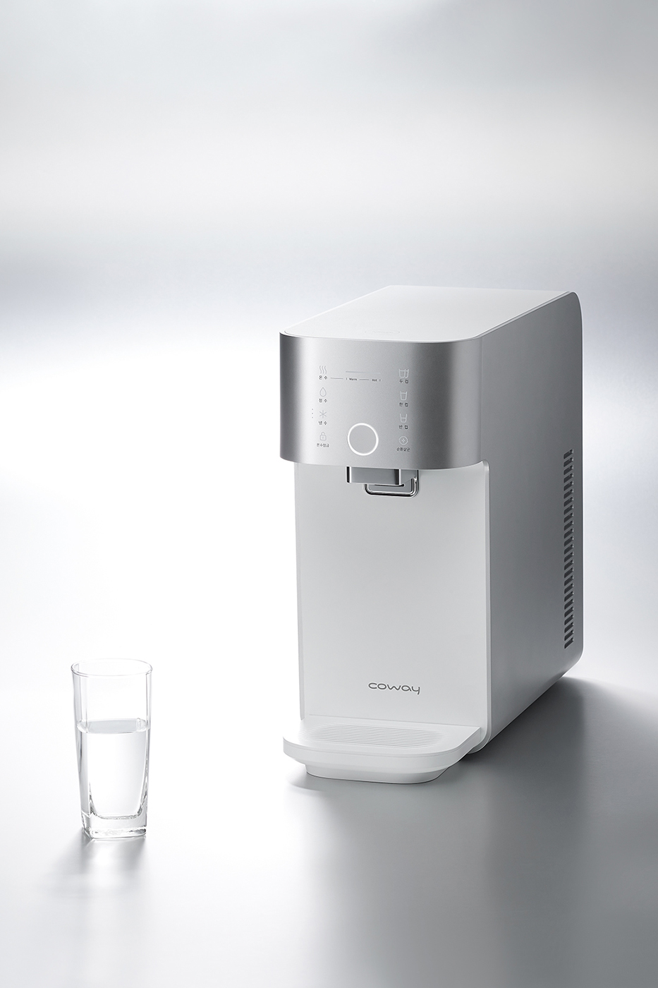 Étant donné que le Compact Water Collection fournit une eau purifiée, il dispose d’un système de stérilisation pour augmenter sa propreté interne. Le plateau du robinet inférieur glisse automatiquement tandis que les canaux d’écoulement intérieurs et le robinet à travers lequel passe l’eau purifiée sont stérilisés.