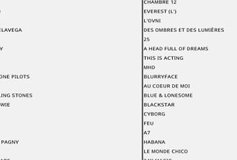 À ce qu'il paraît, 2017 a été une bonne année pour les ventes d'albums. Chouette. Mais quand on regarde le classement... on ne sait plus ce qu'il faut penser. OK, les dix premières places sont des productions françaises, et c'est sans doute une bonne nouvelle si l'on se fie à Guillaume LeBlanc, directeur général du Syndicat National de l'Édition Phonographique : " Nous pouvons nous réjouir de la belle performance de la variété et de la pop françaises, qui cumulent près de la moitié de ces volumes de consommation (48%) ". Si l'on y ajoute les musiques urbaines produites en France, le score des productions locales atteint plus de 75% des meilleures ventes de l'année.