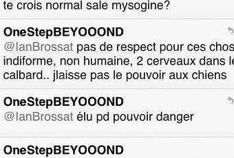 Et toujours sur le même registre, qui a tout particulièrement attiré l’attention des médias compte-tenu de la visibilité médiatique et politique de la victime (Ian Brossat, Adjoint (PCF) à la Maire de Paris, en charge du logement et de l’hébergement d’urgence depuis avril 2014), cette bordée d’insultes homophobes :