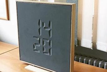 Les chiffres apparaissent comme des impressions, altérant la topographie de la surface de l'horloge. Voilà une horloge qui combine une esthétique classique et sculpturale avec un design numérique et futuriste...