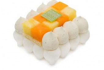 Sur un lit de meringue croquante, l’onctuosité d’une ganache à la vanille de Madagascar est associée à la fraicheur de cubes d’ananas et de mangue frais.