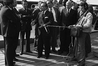 Paul Delouvrier (2e à gauche de profil) était venu sur la base de loisirs dans les années 1970. (photo JCH)
