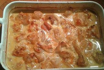 x Désosser les pieds, couper les chairs en gros morceaux et les déposer dans un plat à gratin