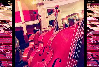 Une fois arrivé dans la salle, il y avait déjà des musiciens et des instruments sur la scène. Il n'en fallait pas plus pour intriguer les garçons qui sont allés voir de plus près les contrebasses, les timbales et observer les musiciens.