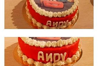 Oui encore un gâteau fait pour les 5 ans de mon Andy. C'est le dernier après j'arrête. Celui-ci je l'ai réalisé le jour même de son anniversaire pour qu'il souffle ces bougies avec papa maman, les papys et sa mamy JoJo comme il l'appelle. Un très bon gâteau très facile à réaliser et très rapide. Pour la ganache au chocolat blanc j'ai pris la recette chez Alicia du blog recette facile.