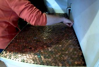 Cet homme, par exemple, a décidé de faire un plan de travail spécial dans sa cuisine avec des centaines de pièces de 1 cent, il a crée un vrai chef d’œuvre!