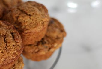 1. Placer la grille au centre du four. Préchauffer le four à 190 °C (375 °F). Chemiser 12 moules à muffins de cassolettes en papier ou huiler les moules.2. Au robot, réduire les flocons d’avoine en poudre. Verser dans un grand bol et ajouter tous les ingrédients secs et les dattes.3. Dans un autre bol, mélanger les oeufs, l’huile, le lait de beurre et la compote de pomme, à l’aide d’un fouet. Verser sur les ingrédients secs et mélanger délicatement à la spatule juste assez pour humecter la farine.4. Répartir la pâte dans les moules. Cuire au four de 20 à 25 minutes ou jusqu’à ce qu’un cure-dent inséré au centre d’un muffin en ressorte propre. Démouler et laisser refroidir sur une grille.*NOTEFarineVous pourriez remplacer 125 ml (1/2 tasse) de la farine par 125 ml (1/2 tasse) de graines de lin moulues.