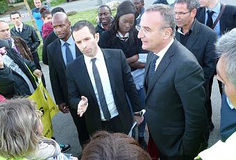 Benoît Hamon et des syndicalistes enseignants à Val-de-Reuil. (photo JCH)