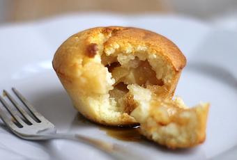 Verser 1/3 de la pâte dans les 6 moules à muffin beurrés puis répartir les pommes caramélisées avant de recouvrir du restant de pâte.
