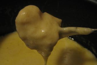 b) Si la consistance est trop liquide, rajouter de la maizena (que vous mélangez au préalable avec un peu de vin blanc pour éviter les grumeaux) la fondue épaissira ainsi