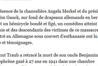 Une dimension de l’histoire du nazisme injustement méconnue… Sous couvert d’eugénisme, Hitler n’a pas fait assassiner que des juifs, mais aussi des homosexuel(le)s, des prisonniers politiques, des roms, gitans, Tsiganes, polonais (même non-juifs), intellectuels, écrivains et artistes dont les œuvres étaient considérées comme subversives, des malades, des handicapés physiques et psychiques. Une mosaïque bien macabre de victimes… Se souvenir :