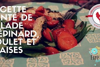Pour commencer l’année du bon pied, j’ai décidé de vous partager ma recette de salade d’épinard, poulet et fraises, une recette vraiment populaire chez nous. Lorsque j’ai découvert la recette de salade d’épinard, poulet et fraises, c’était pendant une phase de détoxification et dans le but de nous remettre en forme pour la nouvelle année. Je crois que c’est une bonne recette pour avoir une bonne source de protéine, le bon dosage de veggies et le petit plus qu’apporte la fraise, ça donne une saveur unique. Les fourchettes les plus difficiles aimeront également cette délicieuse recette. Toute la famille a adopté à la maison et c’est devenu un classique. Idéale pour apporter dans un lunch le midi. La recette est assez rapide et si vous avez un restant de poulet après avoir fait un bon gros poulet (gardé la carcasse pour en faire un bon bouillon maison) garder la viande pour faire cette délicieuse salade. Pour ma recette j’ai utilisé cette fois-ci des poitrines de poulet.