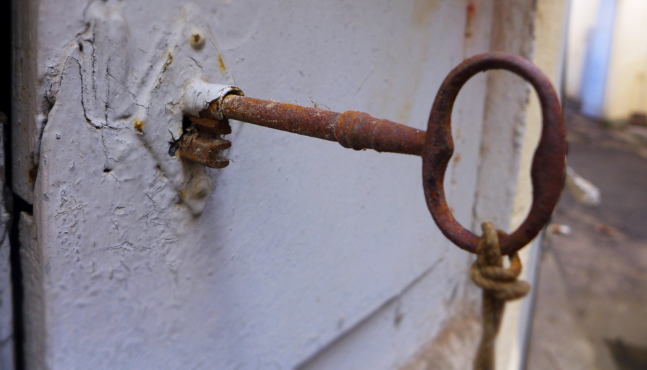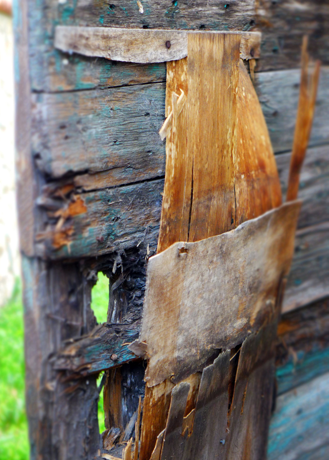 Le bois a bien vieilli, le temps effiloche doucement la porte du jardin, mais le bleu du ciel y a laissé son empreinte.
