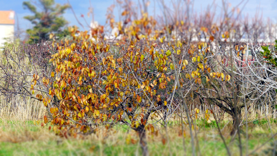 Comme un air d'automne…Un arbre fruitier ne veut pas se croire en hiver…Il s'accroche à ses feuillesou est-ce l'inverse ?