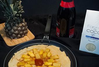 chandeleur, # crêpes, # sans gluten, # gluten free, # farine de coco, # bio et équitable, # partenariat, # Elixanatur.fr, # ananas, # vanille, # flambé au rhum, # caramel beurre salé, #