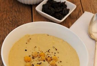 - Servez aussitôt en ajoutant quelques pois chiche sur vos assiettes de velouté