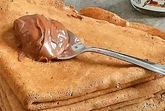 Ici on les aimes fines, avec pleins de pâte à tartiner.... Et là je vous propose la pâte à crêpes version chocolatée pour plus de gourmandise!