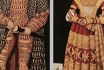 Ces deux impressionnants portraits en pied, grandeur nature, partageaient le même cadre avant d’être transférés du bois vers la toile. Ils ont été réalisés à la suite du mariage du duc et de la duchesse, en 1512 (on ignore pourquoi la réalisation prit deux ans). [1]