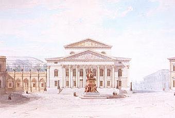 Le Roi Maximilien II, qui régna de 1848 à 1864, lui confia la conception d'un projet de jardin d'hiver à ériger au-dessus du Théâtre de la Résidence. L'idée d'un tel projet remontait à 'époque où Maximilien était encore Prince héritier. Le rêve du Prince devenu Roi prit enfin forme: le jardin d'hiver fut terminé en 1854 dans le goût moderne d'une époque qui découvrit les possibilités d'une architecture utilisant le verre et l'acier et dont le Crystal Palace de l'exposition universelle (Great Exhibition of the Works of Industry of all Nations / grande exposition universelle des travaux de l'industrie de toutes les nations) de Londres en 1851 est l'exemple-type.