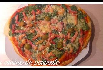 Aujourd'hui je vous présente une pizza qui a fait fureur à la maison. Nous adorons les épinards oui même mes fils adorent. J'ai utilisé des épinards frais que mon papa m'a donnés. Je vous recommande cette pizza.